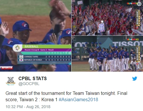 2018 雅加達亞運正如火如荼進行中,繼「神力女超人」郭婞淳、「鞍馬王子」李智凱等中華健將表現亮眼,紛紛替我國奪下眾多獎牌後,稍早前,又有一則令大家振奮人心的消息,中華棒球隊以 2 比 1 擊敗擁有眾多一線球星的韓國隊,於本屆亞運首場賽事順利開胡。