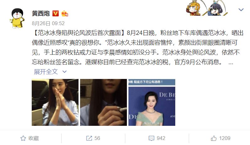大陸女星范冰冰自從捲入「陰陽合同」逃稅風波後,幾乎形同人間蒸發,7月初現身上海醫院探望病童後,外界對他的動向也都只能捕風捉影。24日,大陸網友發文表示自己在某處地下停車場,看到范冰冰本人,還得到親筆簽名。