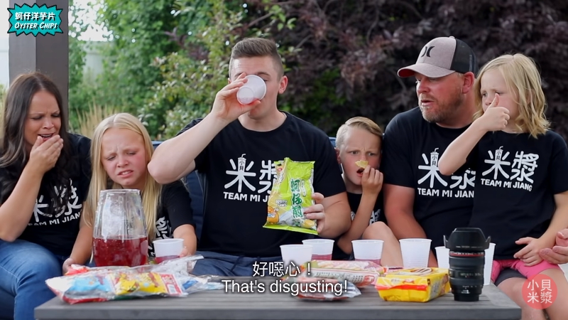 為了這次的試吃活動小貝特別選擇了口味比較強烈的零食,如魷魚乾、薑糖、蚵仔煎口味洋芋片等等,對於這些異國食物他的家人們全都反應激烈,頻頻灌水做出誇張表情,讓網友笑翻。