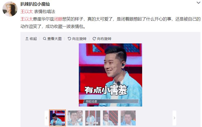 在愛奇藝專訪中,王以太也解釋自己的「表情包唱法」,不過也笑稱之後會做好表情管理。對於舞台上表情豐富的他,王以太認為「唱歌就是要投入嘛,不過我以後會多注意的」,甚至還問了一旁節目中的「顏值擔當」Ice,「你怎麼這麼會管理你自己的表情」,Ice解釋他就是唱歌太投入,王以太繼續追問解決辦法,Ice笑說「那你就在投入的時候,想一想自己的表情會不會可能有點醜。」無奈的王以太最後仍相當有自信的說,「我覺得我怎麼樣都帥」。