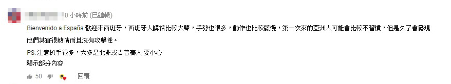 對此也有網友貼心替那名大叔一開始的激動行為做出解釋,留言解釋其實看似「很兇」的肢體和態度其實是文化差異的一種,西班牙人本身講話就比較大聲、手勢也比較多,亞洲人也許不太習慣,但他們其實都很熱情,並沒有攻擊性,對比影片中大叔得知林辰僅想為街道整潔盡份心力後,浮誇的大力讚賞的舉止也間接證實了網友的言論。