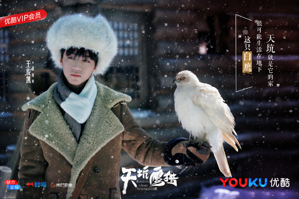 王俊凱最新冒險電視劇改編自網路同名小說天坑鷹獵,由王俊凱飾演的北京青年張保慶,以及文淇飾演的東北獵鷹族少女菜瓜領銜主演。內容描述獨自離開北京的張保慶,巧遇獵鷹族菜瓜和弟弟,三人攜手為恩師尋找解藥,同時為捍衛自然環境,和外界對抗的勵志故事。