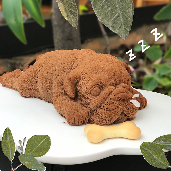 不過根據幾位勇者所說,這隻狗狗是由苦甜巧克力做成的慕斯蛋糕,如果你真的放膽去吃的話,會發現這道甜點是真的很好吃喔!