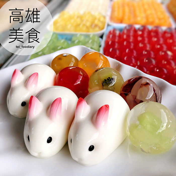 位於高雄瑞豐夜市的「小倆口QQ水果凍」,最近因為這兔兔的關係真的超火紅,如果吃太多夜市裡口味重的食物,可以來這裡吃點解膩的水果凍喔~