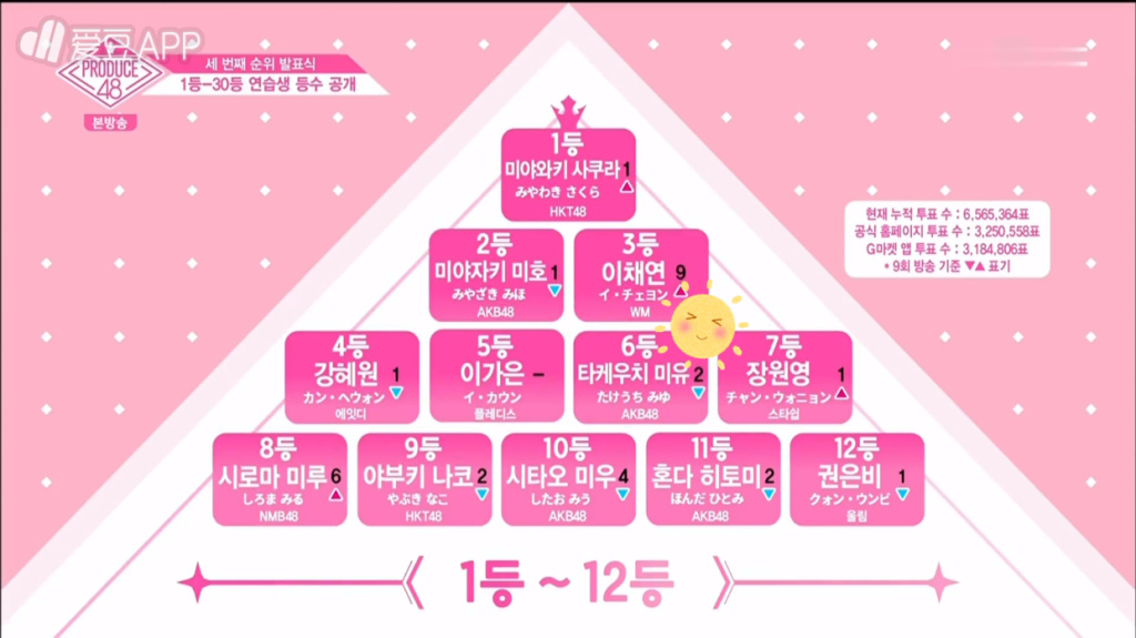 比賽以來幾乎蟬聯冠軍寶座的高人氣選手宮脇咲良,總算一掃前兩周陰霾,重回冠軍寶座。勇於突破自我的宮脇咲良挑戰rap卻沒慘遭滑鐵盧,名次不斷下跌,也讓她坦言留下陰影,不過越挫越勇的她竟再度挑戰rap,最終以「再次相遇」重新回到第一名。