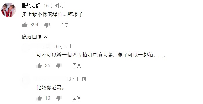 除了模仿吳亦凡的表演超像之外,一旁觀看的導師們如熱狗、張震嶽的扮相也一點都不馬虎,不過這位盜版的潘瑋柏就長得有點奇怪了,不但被孫生當場質問「你是誰啊」,只好現場開唱證明身分,影片上傳後酷炫也在下面留言補刀「史上最不像的瑋柏」網友看完整首後紛紛笑噴,更有人大讚比原唱還好聽,留言「拿這首去愛奇藝發一下吳亦凡就沒工作了」