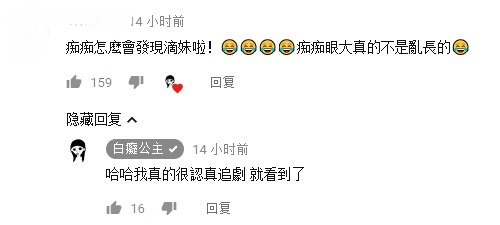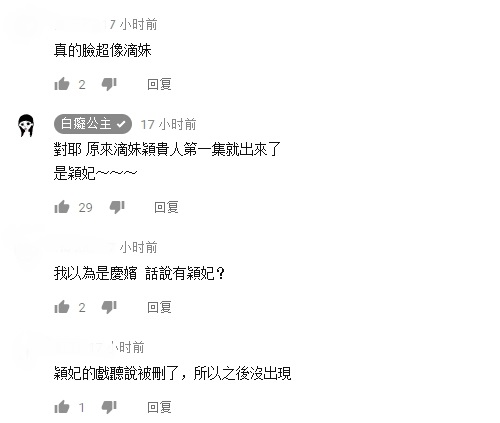 最後白癡公主也分享說其實有許多粉絲說覺得她長得像延禧的女主角「魏瓔珞」,她看的謙虛自嘲「我是醜版的」,不過白癡公主追劇時確實發現有網紅撞臉一位嬪妃!圖中的角色「穎妃」看起來極為神似台灣網紅「滴妹」,網友看了也紛紛大呼好像,笑誇「痴痴眼大真的不是白長的」