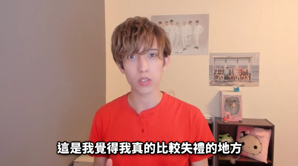 此外他也表示自己的diss影片「只是針對他們那天的表現,讓我覺得很尷尬也很好笑」,表示自己並沒有要否定他們整個人或是過往的所有努力,「畢竟百萬訂閱,我相信絕對不是只靠運氣就能達到的成就」。他更坦承自己在學youtuber的老大哥「PewDiePie」,表示自己很喜歡看他的影片,所以會參考值得學習的地方。同時他也表示自己往後會繼續拍攝「diss、消費」這類型的影片。