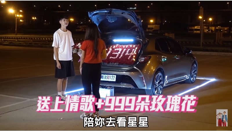 一日晚上,Andy老師把家寧叫到附近的空地,現場停著一輛車,他說明是存錢送給她的禮物,誠懇的問「你願意收下這輛車嗎」,家寧雖然不會開車還是興奮地點頭同意。接著Andy老師送上親手包裝的玫瑰花束,一打開後車廂,裡面還藏有他親手製作、一朵一朵玫瑰花插成的「1314」的看板,並獻唱蔡旻佑的《我可以》,家寧當場感動的掉眼淚,氣氛甜蜜又溫馨。不少網友被這對CP自然又甜蜜的互動感動,激動回應:「最喜歡的高顏質情侶組! 要相親相愛一輩子喔!百年好合!」、「要幸福ㄛ~ 要白頭諧老ㄛ~」,也有網友打趣的敲碗「你們倆感情好好喔~ 別猶豫了,趕緊結婚喔!!」、「期待之後會不會有求婚影片????」。