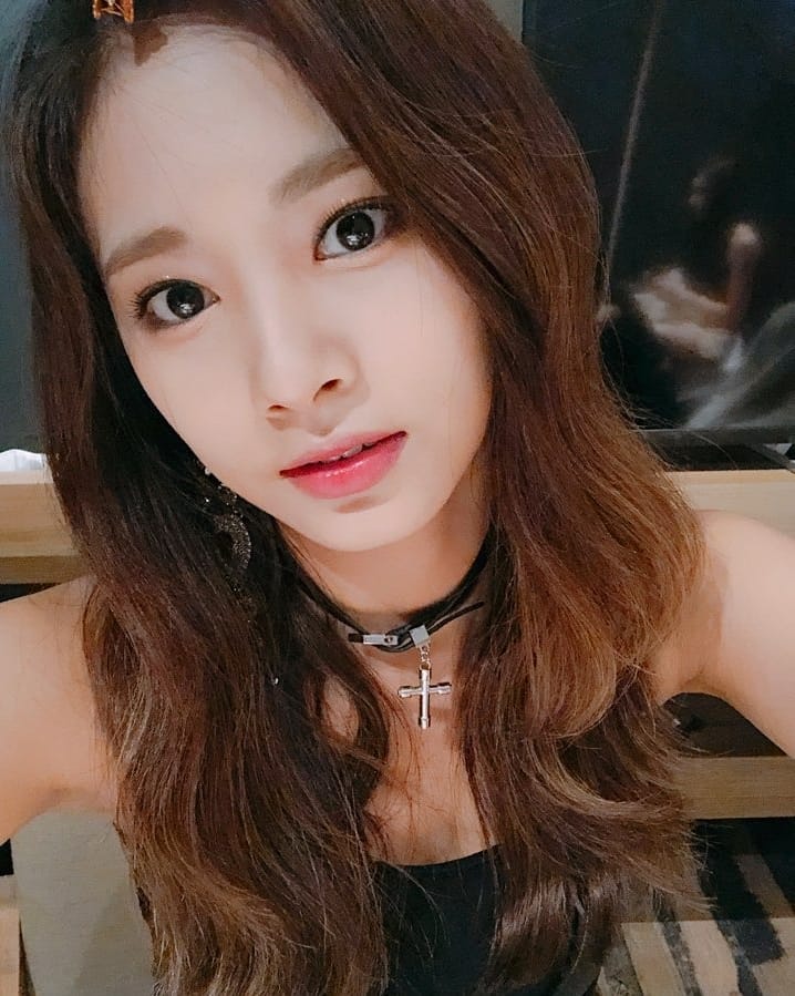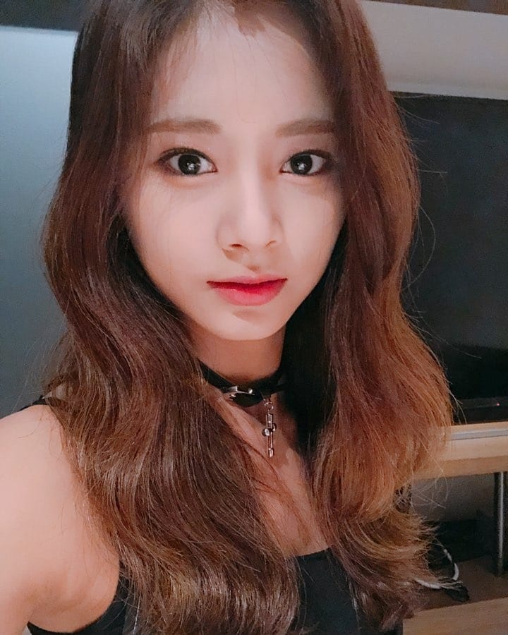 只見照片中的子瑜頂著略小捲的中長髮,身著黑色細肩帶小背心,水汪汪的大眼睛直愣愣的盯著鏡頭,相當迷人,此外,她還曬出由上往下拍的「邪惡視角」照,胸口處若隱若現,女人味十足。