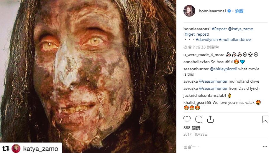 此前,邦妮艾倫也曾演出美國鬼才導演「大衛林區」的經典電影「穆荷蘭大道」中穿針引線的角色「黑臉乞丐」,還有「派特的幸福劇本」、「麻雀變公主」等等。