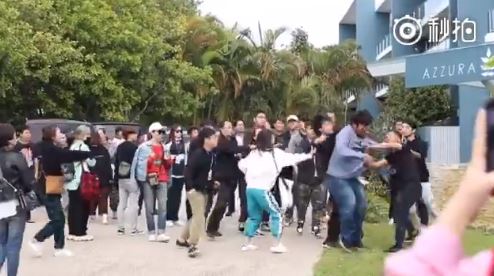 根據澳媒報導,圍毆事件發生在澳洲黃金海岸,雙方人馬只是為了「停車位」大動肝火。5日,澳洲當地時間11點,粉絲帶了當地導遊想前去探班,車子停進停車場時,卻被工作人員指出佔用了他們的停車位,不僅辱罵粉絲和導遊甚至將他們打傷送醫,隨後施暴者也遭到當地警方拘留。