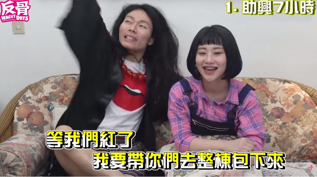 反骨男孩5日發布新影片,影片中瑋哥和凡凡表示:「因為我們最近的影片,有越來越看不懂的趨勢了」,宣布睽違四個月終於要來介紹反骨的新口頭禪!他們首先便講到最近廣為流傳的「助興七小時」。瑋哥講道其實這句話是來自於活動公司的老闆煎魚哥,因為過去反骨經濟狀況還沒有很好,大家便會彼此打氣相約改天去ktv唱歌,而煎魚哥當時便說:「等我們紅了我要帶你們去整棟包下來,助興七小時」,凡凡也接著說:「那這句話很勵志」!
