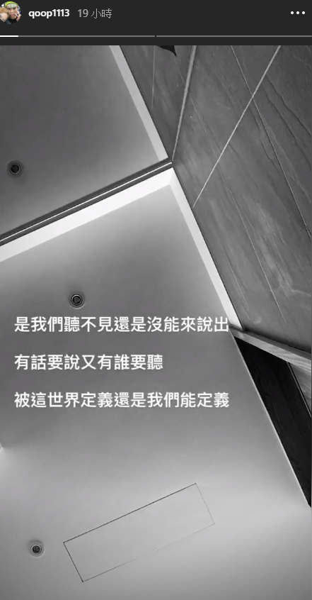 而聖結石隨後也透過IG限時動態發文:「是我們聽不見還是沒能來說出」,更表示:「有話要說又有誰要聽,被這世界定義還是我們能定義」,只見他放上天花板的黑白照,似乎相當無奈。