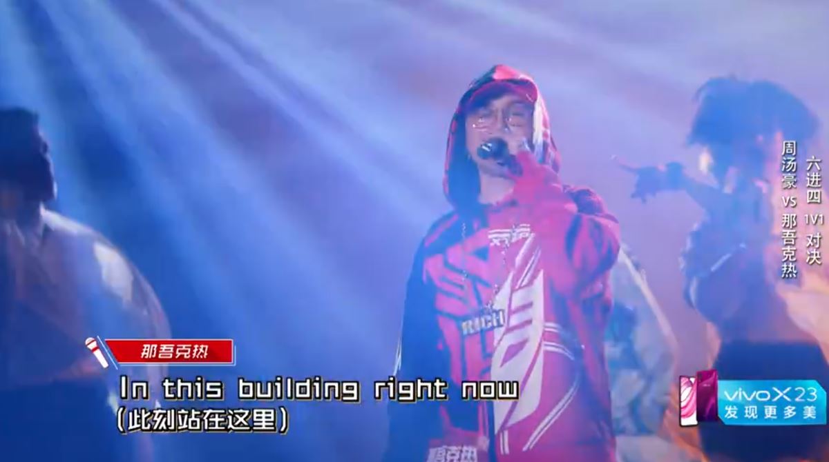 上一期的節目中,選手那吾克熱改版他於2015年參加演唱《中國好歌曲》第二季時博得全體導師青睞的歌曲《漂》,快嘴飆唱維吾爾族語的rap《漂Ⅱ》,唱功成熟、穩定,不僅讓觀眾驚歎不已,製作人們也都給予了超高的評價,他也順利地打敗的同隊的Blow Fever。本期節目,他對上偶像歌手周湯豪再次展現快嘴實力,演唱歌曲《四季》,在1秒8字的rap中,順暢切換中文、英文及維吾爾族語,炸翻全場,也順利晉級4強。