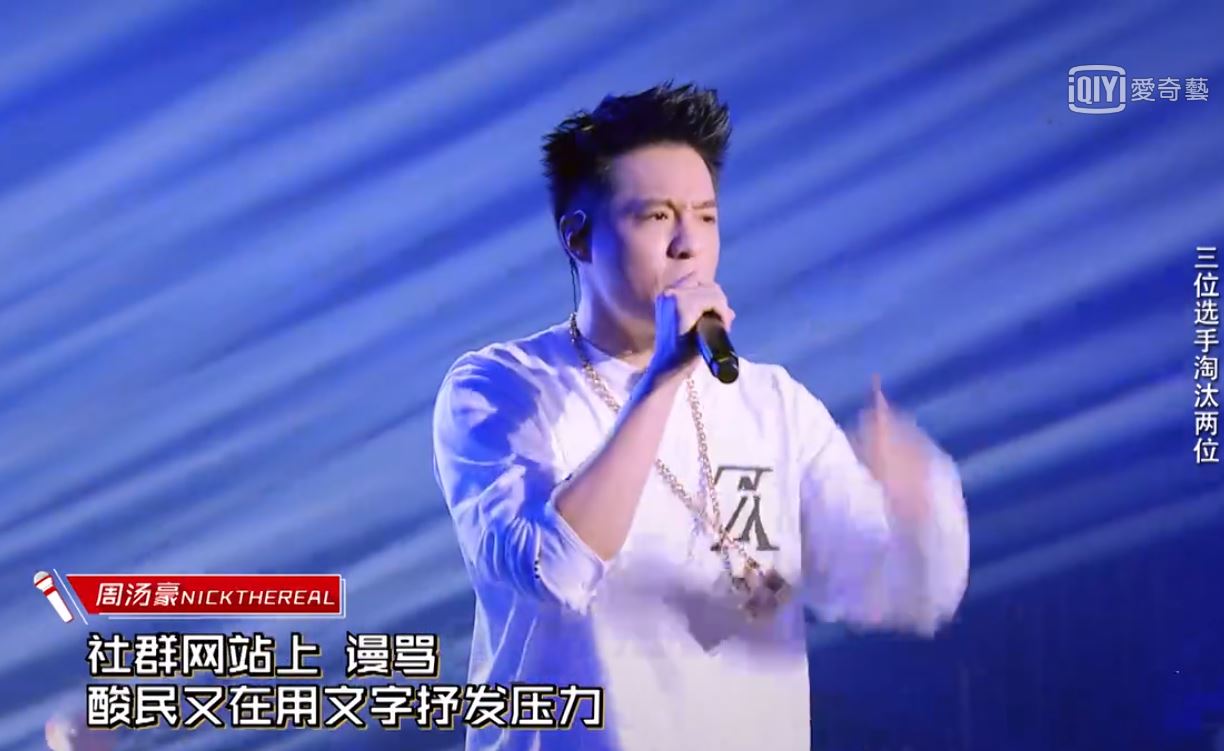 大陸選秀節目《中國新說唱》8日賽程進入6進4階段,比賽分兩輪,第二輪比賽中,由上一票數低的周湯豪、艾熱和王以太三人競賽,周湯豪最終以《做你自己》扳回一城,晉級4強。不過,做你自己的歌詞中句句指向鄉民酸語,8日,周湯豪甚至在微博寫下長文,向外界重述他對音樂的看法,同時也於Instagram上留下「me against the world(對抗世界)」字眼,再度回應網路罵聲。