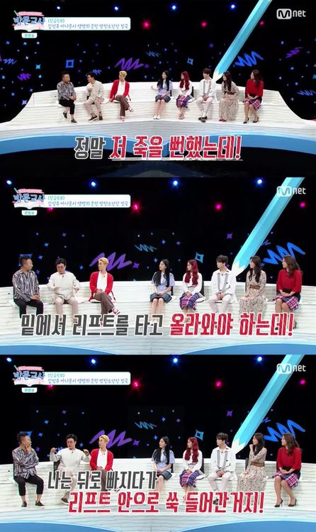 金成柱表示,在2年前2016年的《DMC超級盛典(DMC Festival)》上他正在主持演唱會,下一個演出的是防彈少年團,但是「本來應該由下往上升起來的舞台升降機突然停止運作,但我不知道機器出狀況,一往後退就直接摔下下去了!」接著他又說,掉下去後發現,我倒在某個人身上「我差點差點死掉,是因為柾國救了我一命」,正是因為如此,他強調「我每次看到防彈都很感謝」公開了眾人都不知道的秘密。