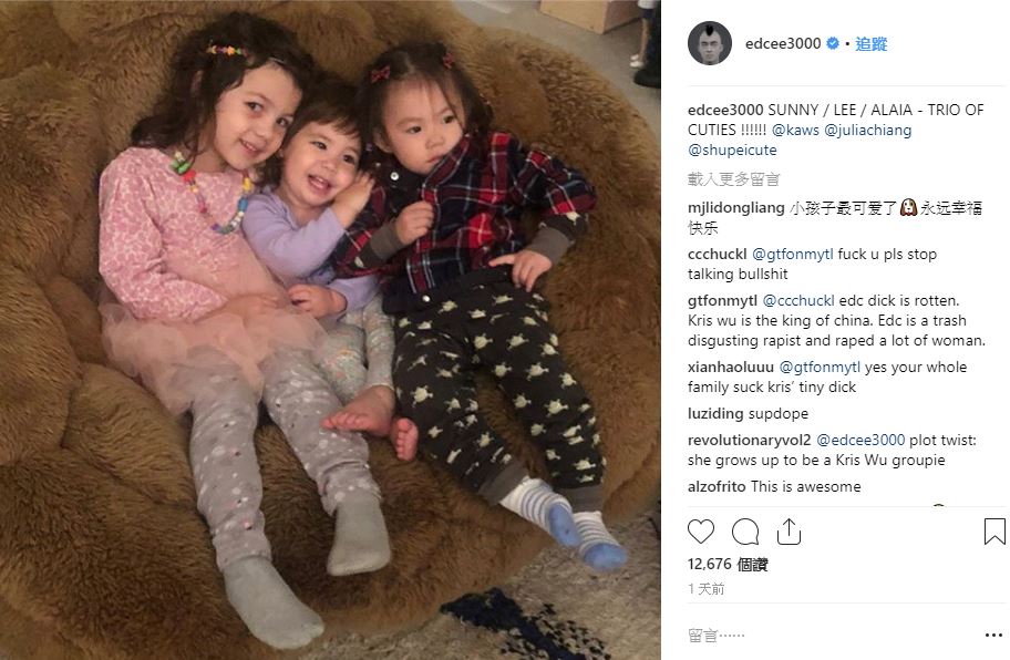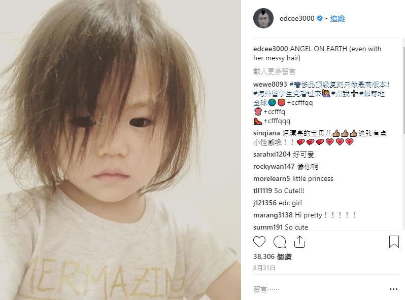 在陳冠希的Instagram上,時常會看到不少Alaia霸氣外露的照片,陳冠希因而戲稱女兒為「大老」,不過Alaia可愛的一面,也曾讓陳冠希形容女兒就像「天使」。