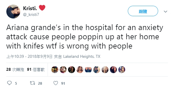 美國饒舌歌手麥克米勒(Mac Miller)在今年 9 月 7 日因服用藥物過量而在加州斯蒂迪奧城的豪宅中過世,得年 26 歲。這個消息不僅震驚了美國樂壇和各國歌迷,也包含了今年 5 月才宣布與麥克米勒分手的 25 歲美國樂壇小天后亞莉安娜格蘭德(Ariana Grande)。事發之後,亞莉安娜的 SNS 湧入了許多麥克米勒對她進行攻擊,而現在的亞莉安娜也僅以一張麥克米勒悼念這位富有音樂才華的前男友,並沒有發表任何言論,不過身邊的友人指出亞莉安娜的身心都因為這個悲劇消息而陷入了不適的狀態。