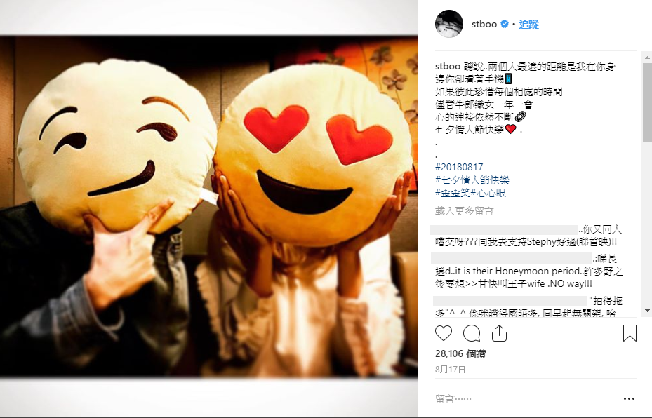 而兩人之後回到王子的住處,便沒有再出門,兩人在台灣疑似展開半同居的生活。王子跟鄧麗欣至今認愛兩個月,也越愛越高調,上月17日鄧麗欣還透過IG放上兩人與Emoji抱枕的合照,並打上「心的連接依然不斷,七夕情人節快樂」,大方放閃。