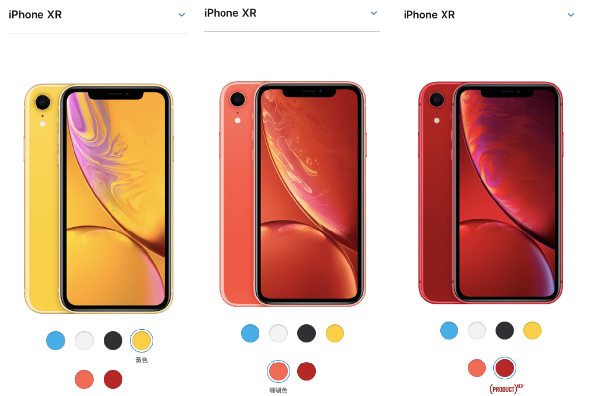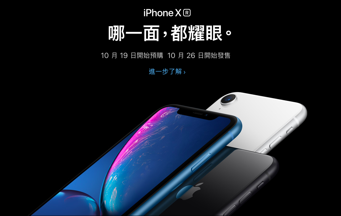 XR的尺寸是6.1吋,容量分別為64G($26900)、128G($28900)、256G($32500)。而且特別的是,XR的手機顏色比過去任何一款iPhone都繽紛了許多:藍、白、黑、黃、珊瑚、紅。而這款手機也會較晚上市,預計在10月26日出貨。