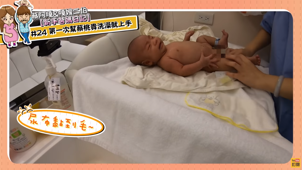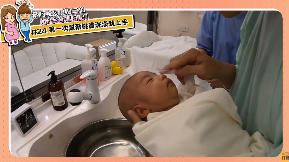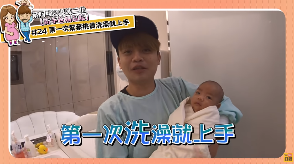 蔡阿嘎自從七月喜獲麟兒之後,便時常在網上分享孩子「蔡桃貴」的生活點滴,第二頻道「蔡阿嘎Life」中的新手爸媽日記也快速成長,至今已經累積71萬人次訂閱,蔡桃貴可愛的模樣也累積許多粉絲,不過近日蔡阿嘎PO出第一次幫蔡桃貴洗澡的影片,竟然忘記幫蔡桃貴打碼,讓許多網友驚呼整組看光光!