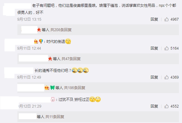 粉絲們聽聞後也紛紛表示「時代的倒退」、「長的清秀不怪他們吧?」、「老子有問題吧,他們這是俊美哪裡是娘」、「過猶不及 矯枉過正」、「羡慕人家長的好看就直說,何必繞這麼大彎子」、「二十一世紀了,還講二元性別論呢」、「為什麼越活越過去了?」、「男的長相清秀一點就說娘,那女的長相凶一點你是不是要叫爹呀」。