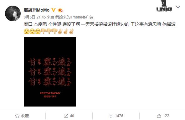 除了不斷辱罵謝霆鋒,邢凱翔也將矛頭指向周杰倫,並標記好友李佳丹。文中顯示「垃圾周的腦殘粉,幹,兄弟在,挺你」!對此,不少網友都認為,邢凱翔也算半個公眾人物了,就這點素質嗎?