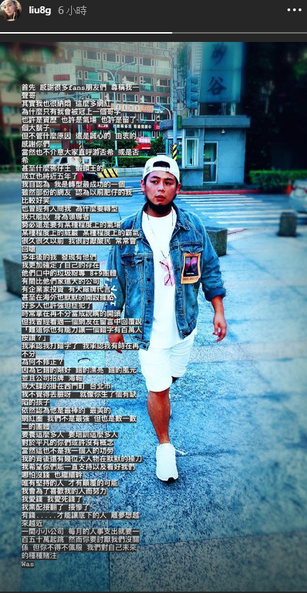 同時他也表示現在操刀「在不瘋狂」團隊,已經經營的有聲有色,現在也不會再對酸民的留言認真:「很久很久以前,我很討厭酸民,常常會回嗆,多年後的我,發現有他們,我更加確定自己的存在,他們口中的垃圾粉專,8+9團體,有間比他們家還大的公司,有企業家投資,有大廠牌代言」,更直言現在邀約不斷:「我愛錢,我愛死錢了,我業配接翻了,接慘了,有錢,才能讓底下的人離夢想越來越近」。