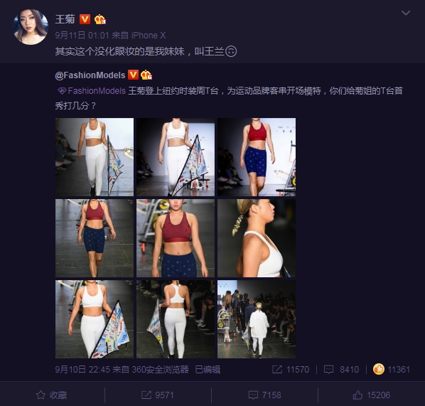 網友們看了以後紛紛評論「這贅肉走秀是認真的嗎?」、「這真的不是歐美風啊........」、「這就是胖啊,沒有高級美」、「她就不能少吃點嗎」、「額...沒有看出來是她」、「…現在做明星真的不需要門檻了」、「這…不是吧 看了好久沒看出來」、但也有網友表示「感覺不塗眼妝更有東方美的韻味。雖然肉肉的,但是我個人莫名覺得有韻味」、「我覺得很自然。。正常人不就是這個樣子嘛」事後,王菊也自微博發博自我調侃「這個沒化眼妝的是我妹妹,王蘭」大方回應網友們。