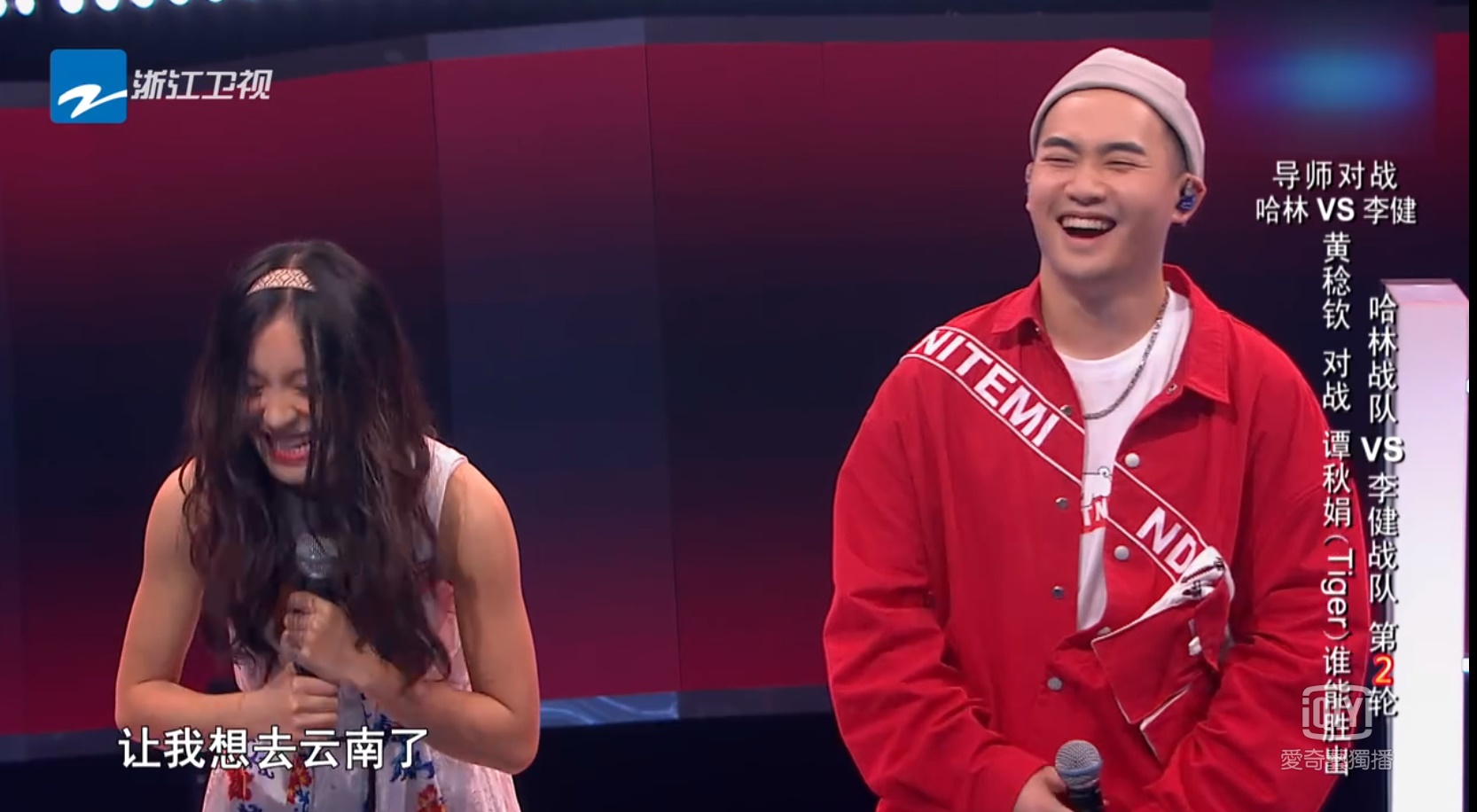 其中,李健戰隊派出最美選手Tiger,哈林戰隊則是派出實力派黃稔欽,兩位選手各有千秋,tiger譚秋娟溫情演繹許巍的《溫暖》,獨特的嗓音彷彿能唱進人心一般,聽得在場觀眾及評審們如癡如醉,而黃稔欽則是演唱曲風輕快活潑的《Say a lil something》,台穩穩健,律動十足。
