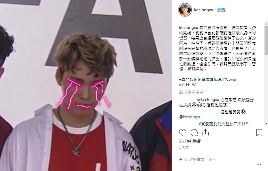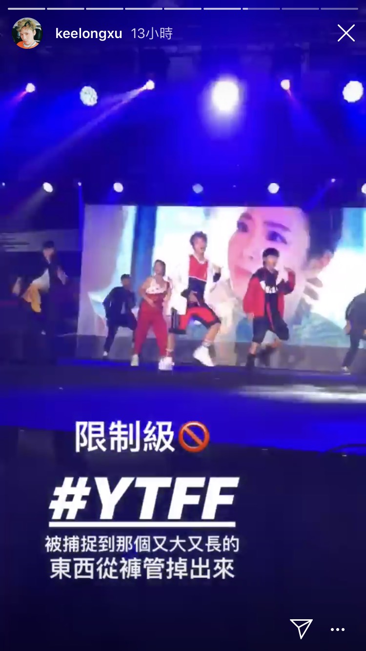 只見「三個人」威風的為YouTube FanFest帶來精彩的演出,但沒想到事後展榮卻在IG黑特自己謝罪寫著「真的覺得很抱歉,身為重責大任的開場,明明上台前都確認過好幾次身上的機器,結果上台還是從褲管掉了出來,真的因為一時慌了,導致排練好的卡關及閃退舞蹈沒有完整的表現給大家看,也影響了台上的展瑞跟茵聲。下台後團員們、公司同仁全部一致誇讚剛剛的演出,但我知道你們只是怕我難過,謝謝你們;我明天就沒事了,警惕、學習經驗。」並tag「真的超謝謝專業導播幫忙Cover」此外,更在限時動態中截圖演出的畫面再度寫下「被捕捉到那個又大又長的東西從褲管掉出來」看得出來相當自責。