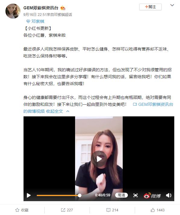 鄧紫棋從過去穿「皮褲」的豐滿身材,到近期開始嚴格把關飲食和運動,讓她的身材不斷進化。16日晚間,鄧紫棋大方決定日後會開始分享減肥經驗,表示自己試過無數種減肥方法,但她認為減肥會遇到瓶頸,「絕對需要有同伴的激勵和啟發」。此前,鄧紫棋也分享健康吃火鍋的方式,透露自己不吃加工食品,也不過多沾醬,網友回應「還有多少養生密技快交出來」,另有人回應「吃火鍋還要養生」。