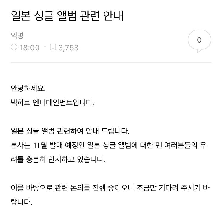 防彈少年團公司宣布日文單曲將於11月發行,內容除舊歌外,將加入由AKB48製作人秋元康填詞的新歌《Bird》,引來大批網友抗議。網友指出秋元康是「親日派」,和日本首相安倍晉三關係良好,更起底兩人合照,直指秋元康就是右派人士,因而留言表示「立刻中止和右翼作詞家的合作」、「我喜歡的是唱韓文歌的防彈」、「不要特優日本市場」,甚至揚言「不接受撤回歌曲以外的回應」。