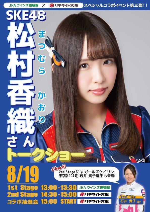 日本偶像藝人松村香織為日本大型女子偶像團體AKB48姊妹團體SKE48的成員,在2009年時以SKE48三期生身分出道,但因長期身為研究生未能升等為正式成員被賜予「SKE48終身名譽研究生」的頭銜,也曾被任命為「AKB48集團研究生會會長」,等於是AKB48系列團體所有研究生的總領隊,目前所屬Team KII。