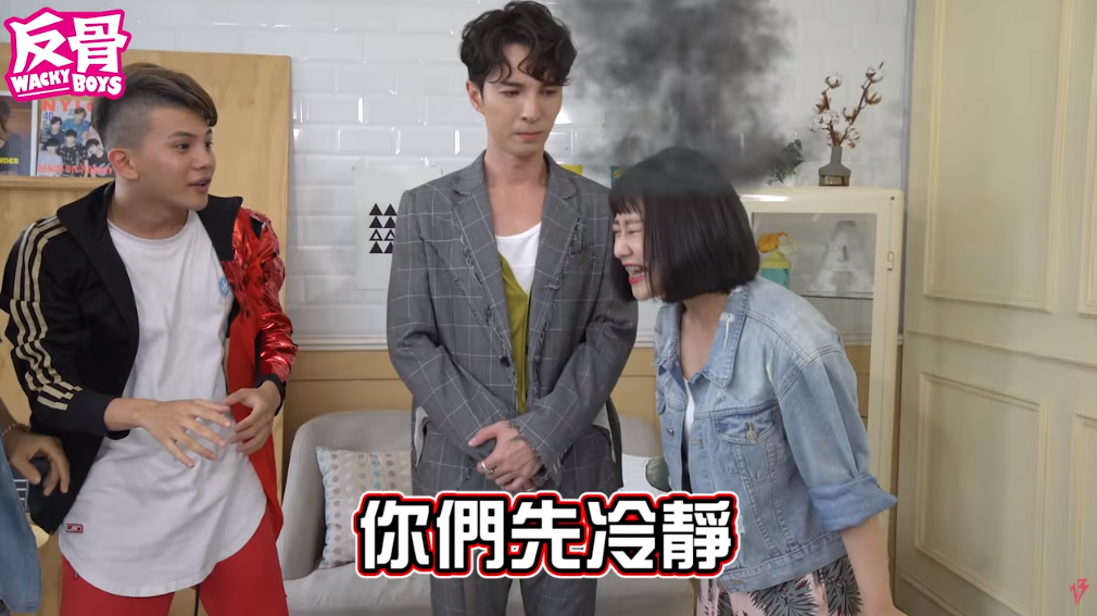 扮演愷樂的凡凡也故作生氣直說:「你們先冷靜」,和當時節目裡兩位主持人變臉的模樣如出一轍!不僅如此,孫生也接著對凡凡說:「你們不用主持了,我主持就好了」,一旁的陳勢安更呈現出超級尷尬的樣子,模仿真的超級到位!