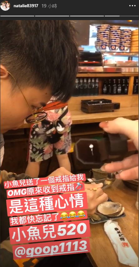 9月17日是聖嫂嘟嘟的生日,而IG便可以看出聖嫂嘟嘟在這一天也是和老公聖結石一起度過,只見她上傳一張鑽戒的照片並且打上:「小魚兒送了一個戒指給我,OMG原來收到戒指是這種心情,我都快忘記了」,而她所打的小魚兒便是聖結石的暱稱「Bang bang魚」,此外聖嫂嘟嘟也打上:「小魚兒520」甜蜜告白。