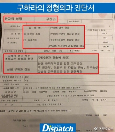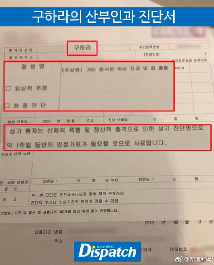 不久後,具荷拉更直接公開驗傷報告,指出她的頸椎、臉部、下肢多處挫傷,甚至出現子宮出血的情況,需要再醫院休養1個月,她拿著自己的演藝生涯做賭注聲明「不是我的錯,不管是什麼理由,很抱歉」並對於來自四面八方的傳言表示「不想再聽到是非的話,因為這次的事情接受採訪,我覺得很丟臉,但我還是想說出真相,就算不能在演藝圈活動,不是就是不是」態度相當堅定。