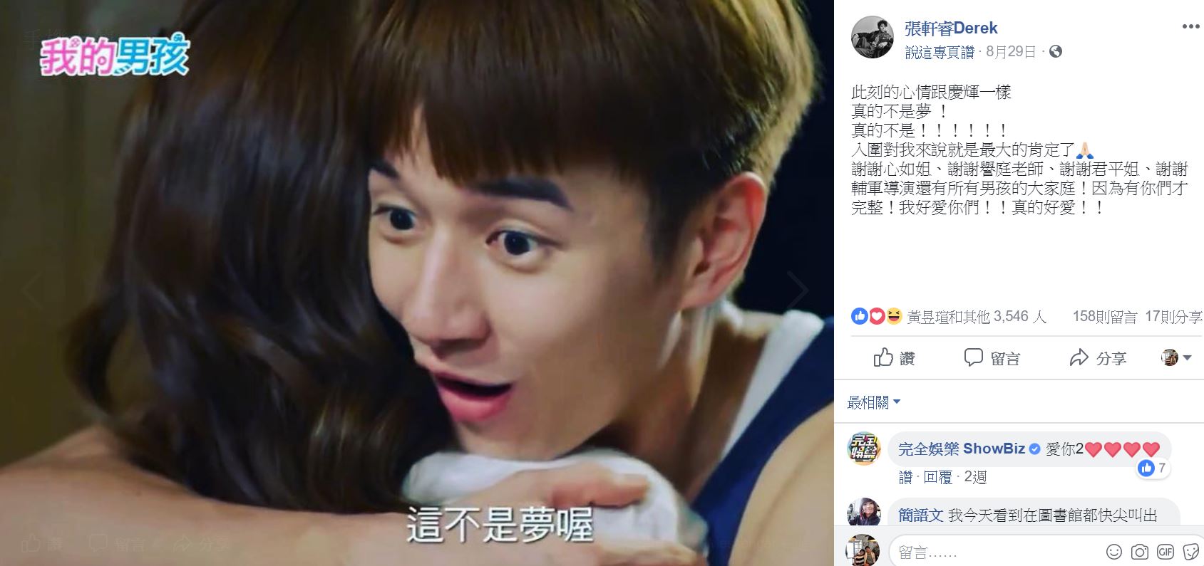 張軒睿透露得知入圍金鐘的當下,他因為不可置信而不斷跳針問到「真的嗎」,也很開心終於用「作品」向大家證明他的努力。張軒睿表示自己絕非幸運,演出我的男孩時,因為力求完美時常做惡夢,更回想起自己小時候就缺乏自信,因此他總是激勵自己,「不能停下來,只要停了就會懶,懶了就沒動力」。