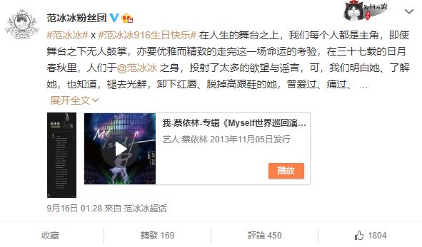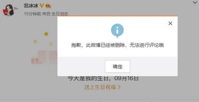 16日,適逢范冰冰37歲生日,在超過3個月沒更新的微博裡,范冰冰突然上線把微博的生日祝福刪除,連近月對范冰冰漏稅風暴始終三緘其口的男友李晨,也都打破沉默5次上線微博,引發外界關注。