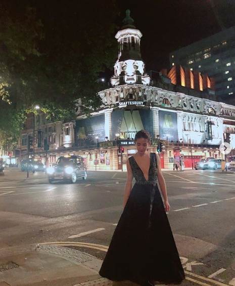 瑤瑤18日在臉書曬出美照,只見她站在倫敦街頭,盤起長髮、戴上垂掛式耳環,身穿一襲黑色長禮服,女人味十足,但值得注意的是,這件禮服讓瑤瑤「胸門大開」,V自剪裁開衩到肚臍,大方露出性東、西半球,傲人長輩呼之欲出。除此之外,禮服下班深的剪裁也不遑多讓,下擺高高衩設計讓人看得目不轉睛。
