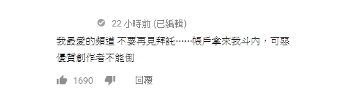 不少網友們看完以後紛紛猜測878發明家因為繳不出罰單,要關閉youtube頻道了,紛紛急著留言挽留「我最愛的頻道 不要再見拜託⋯⋯帳戶拿來我斗內,可惡 優質創作者不能倒」、「希望這部片只是開玩笑 未來還能再看到你的影片」、「媽的,現在,本來不錯的頻道人氣高就變調,這種高品質的又被幹,是不是現在youtuber只能bangbang或者在哪裡哭並賣光超市東西才能看」、「878加油,同為創作人需要給你一個Respect!!我還期待你的超屌新發明呢!!」、「希望這是假的我超喜歡你的影片」。