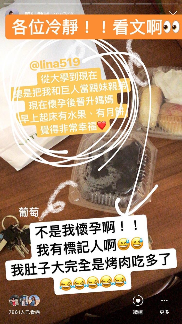「彥婷」昨在IG發布限時動態,內容提及「懷孕」二字,且提到「早上起床有水果、月餅覺得非常幸福」讓粉絲驚呆 :難道彥婷懷孕了?晉升媽媽了嗎?原來在文字的上方有標記一名友人,虛驚一場後彥婷也再度發限時動態澄清「各位冷靜!看文啊!」「我有標記人啊!」同時彥婷也自嘲「我肚子大完全是因為烤肉吃多了!」,時常在網路上與網友分享私下和男友巨人相處的趣事,想必粉絲們肯定也相當期待這對最萌身高差情侶檔能早日傳出真正的喜訊吧~