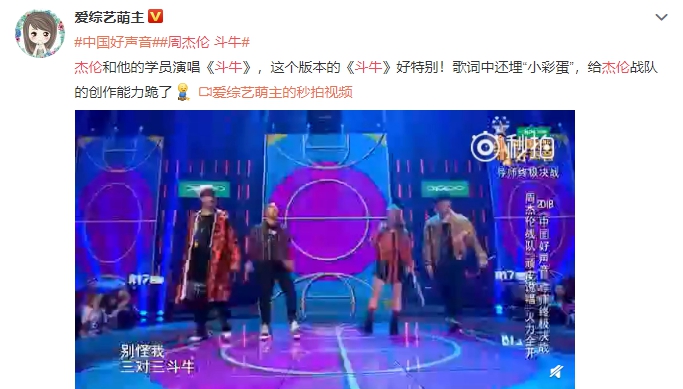從節目剛開始的戰隊表演環節,周杰倫就攜隊員演唱了改編版《鬥牛》,在歌詞中加入了對另外三支戰隊的挑戰宣言,傳達對戰態度,其中周杰倫將不少說唱歌詞重新改寫,不僅把三隻戰隊的隊名加入歌詞,例如「不畏"東北虎”多麼威武」、「這群"哈士奇"只能搖頭嘆息」「我的天哪 怎麼能夠這麼炸」等歌詞都能感受到火藥味十足,現場也是呼聲連連,讓人不禁感嘆果真是「地表最狂」戰隊。