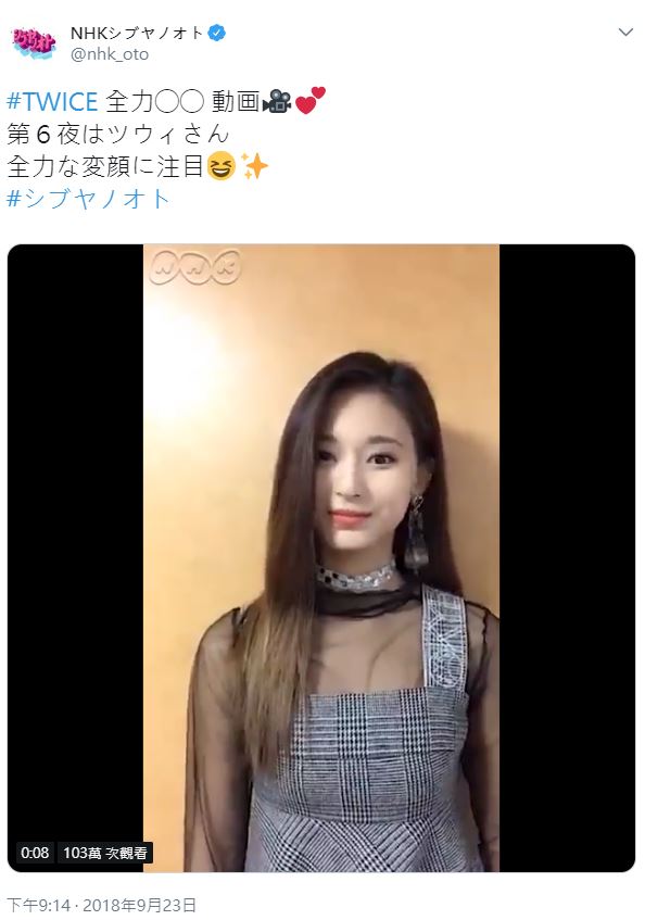 韓國超人氣女團TWICE,憑藉甜美外表和歌藝出道約莫3年人氣持續看漲,去年更將演藝圈觸角伸向日本,今年9月,更推出首張日語專輯《BDZ》開賣當天就成為韓國女團專輯銷售量冠軍。15日,TWICE錄製日本NHK電視台的音樂節目「澀谷之音」(シブヤノオト)幾天後澀谷之音還在Twitter上,分享子瑜賣萌的短片,就連日本網友都為之傾倒,在Twitter日區人氣排名成為第一名。