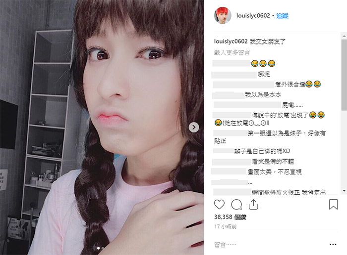 不過放火昨日在IG中突然宣布脫單,讓許多粉絲相當震驚!只見他發文表示:「我交女朋友了」,更上傳一張綁著雙辮女生的照片,照片中的嫩臉五官相當精緻漂亮,不過仔細一看卻可以發現這個女生根本就是放火本人,而除了照片之外,他也上傳了一個撒嬌的影片,讓許多網友看見影片之後直言:「照片很正,影片秒崩」。