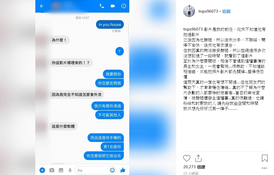 而在詢問過前任後,前任表示「完全不知道怎麼會外流」,冥樣雖然傻眼但影片外流已是事實,他坦言自己相當的驚慌也很無助,並表示「不知道該相信誰」,更說自己曾「一度也有想不開過」,但是好險有朋友們的幫助,讓他漸漸好轉,並且能勇敢的站出來面對。