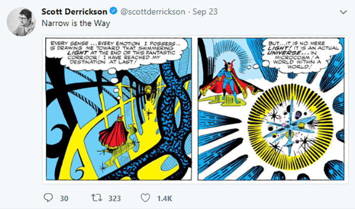 過了幾天,導演於9月23日再度於推特上PO出《奇異博士》漫畫的兩張組圖,漫畫圖中奇異博士說出「不再是光明了」、「這是個現實的宇宙結構」,圖中疑似同時帶出永恆族(Eternity)的微觀(Microcosm)。