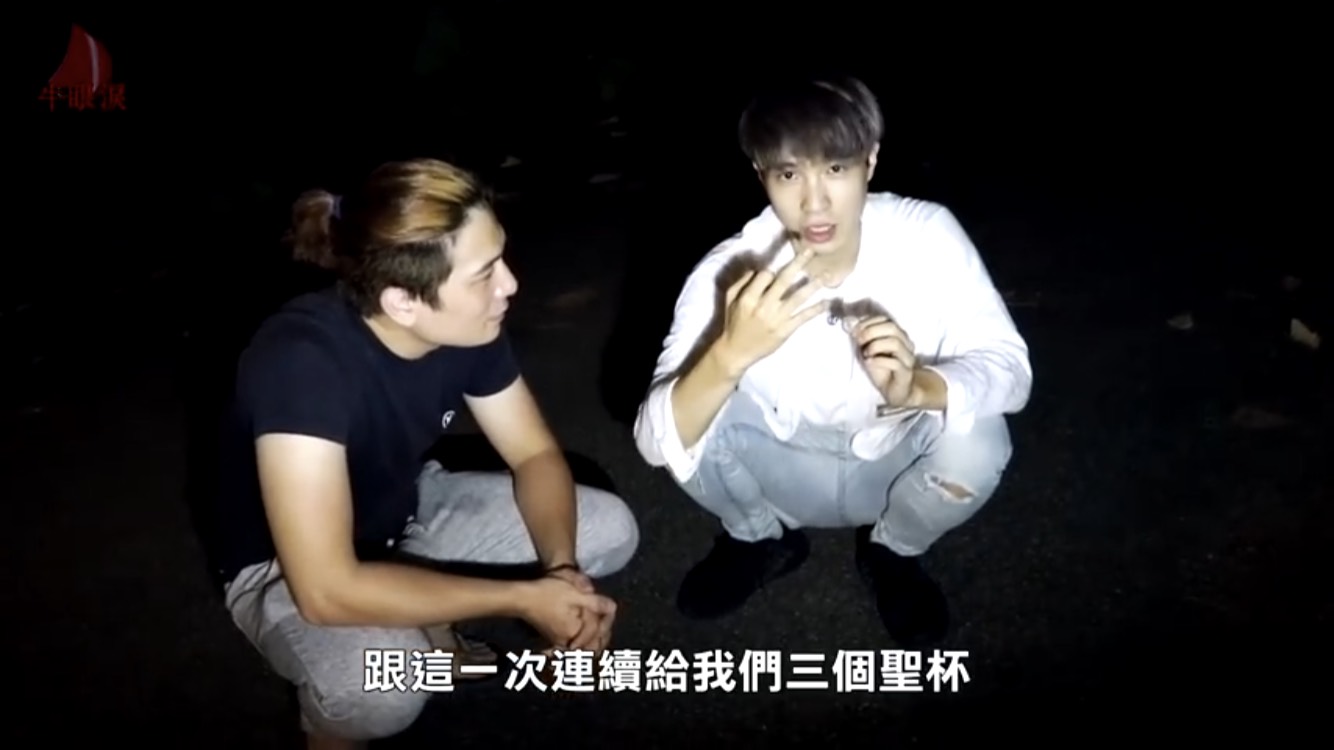 離開那裡後,王狗和朋友一起丟硬幣「擲筊」,分別問了「請問你們是不是真的存在這個世界上」、「如果我們剛剛打擾到你們,那些聲響是給我們的警告嗎」、「上次我們在這裡連擲七個聖筊,是你們操作的嗎」等幾個問題,幾乎都得到了聖筊,唯有問到「如果你們真的希望我們離開,可以給我們一個聖筊、外加一陣大風嗎?」時獲得了笑筊,驚奇的是,的確有一陣風隨之而來......