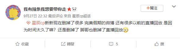 「星辰CP」2年前的甜蜜互動再次受到關注後,微博上就有網友想念當時的節目片段,並表示「有他們去長沙玩的照片嗎」,並發現兩人似乎已經隨著節目結束而漸行漸遠,發文說到「新新現在刪掉了很多完美假期的微博,還有很多以前的直播重播 是因為時間太久了嗎?還是刪掉了?腳哥也刪掉了直播重播」。
